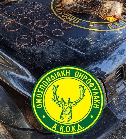 Στις 12:45 περίπου, σταμάτησαν ένα αυτοκίνητο μ’ έναν επιβαίνοντα και και στον έλεγχο που πραγματοποιήθηκε στο αυτοκίνητο, βρέθηκαν δυο λαγοί νεκροί, ένας λαγός ζωντανός και 18 συρματοπαγίδες (τέλια).