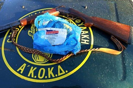 Από την έρευνα εντοπίστηκε μία συσκευασία που περιέχει φυτοφάρμακο, η χρήση του οποίου απαγορεύεται στην Ελλάδα, καθώς και ένα κυνηγετικό όπλο, του οποίου η άδεια κατοχής έχει λήξει.