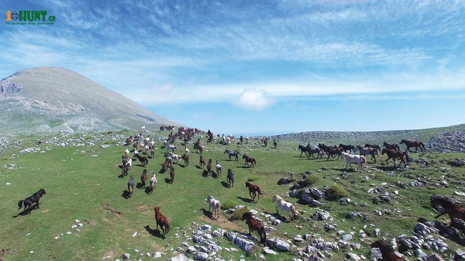 Ομως αντί για αγριοκάτσικα άκουσα χλιμιντρίσματα και παρατηρώντας με τα κιάλια είδα μια αγέλη από 200 έως 250 άλογα.