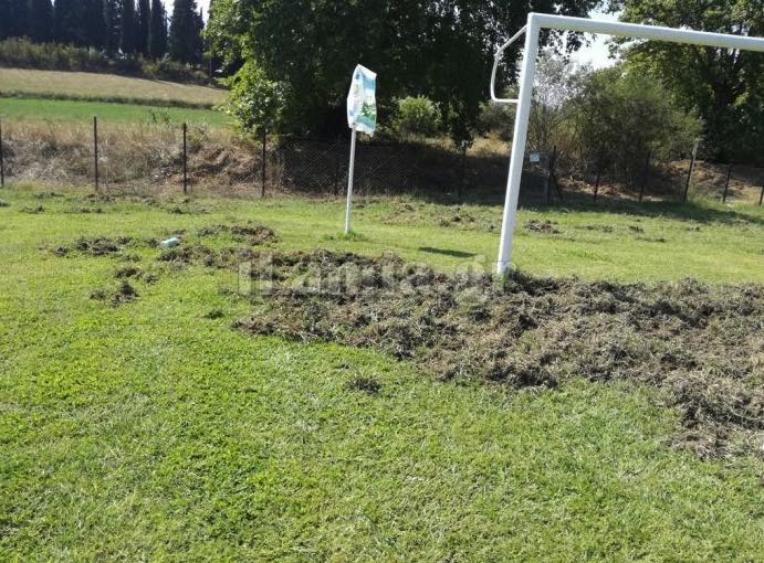 Αγέλη αγριόχοιρων , όπως εκτίμησαν μπήκε στο γήπεδο και σε πολλά σημεία του χλοοτάπητα έκανε ζημιά . Το τερέν κοντά στην μια του εστία και στις γωνίες του γηπέδου κυριολεκτικά σκαμμένο. Τα αγριογούρουνα το έσκαψαν προκαλώντας φθορές σε ένα γήπεδο που είχε ετοιμαστεί για να φιλοξενήσει την τοπική ομάδα.