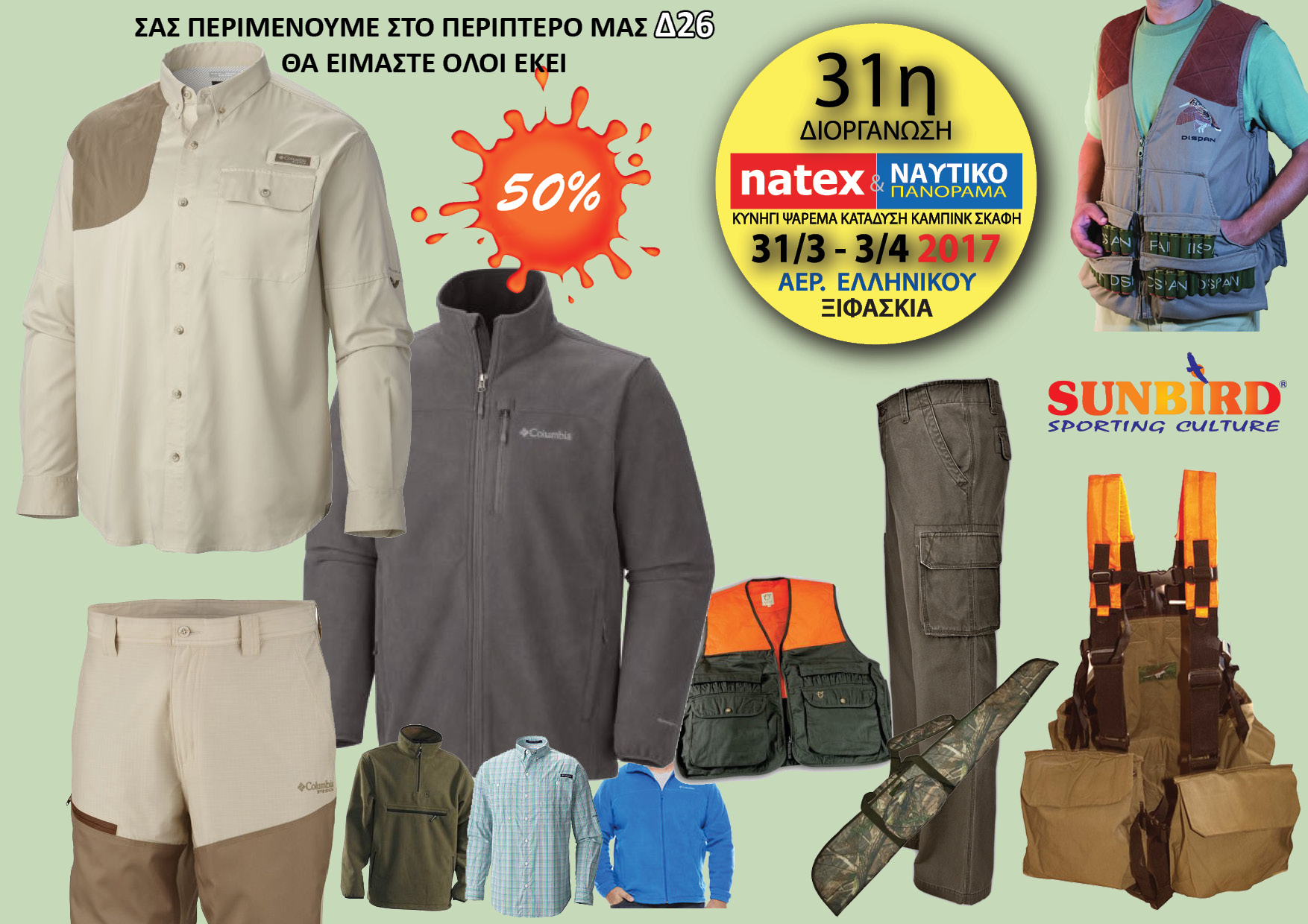 Η SUNBIRD στο πλαίσιο της έκθεσης ΝΑΤΕΧ 31/3 – 3/4 διοργανώνει Bazaar προϊόντων , στο περίπτερό της Δ 26 , σε επώνυμα είδη ρουχισμού – και όχι μόνο , πολλών γνωστών εταιρειών , με εκπτώσεις που σε κάποιες περιπτώσεις θα ξεπερνούν το 50%. Οι εκπτώσεις θα ισχύουν μόνο κατά τη διάρκεια και για αγορές που θα πραγματοποιηθούν από την έκθεση. Όλες οι γνωστές μάρκες σε τιμή έκπληξη!!!!!!