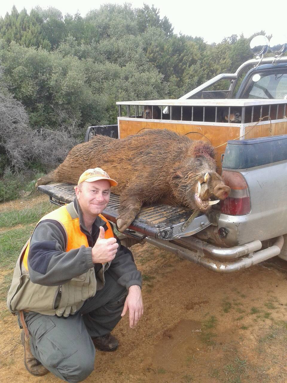 Ο Κώστας Χουλιάρας μετά από δύσκολη διαδρομή έφθασε κοντά στα σκυλιά που έκαναν στάμπα το γουρούνι και κατάφερε να το σκοτώσει.