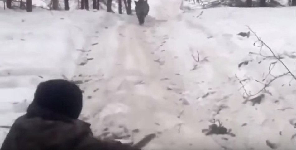 Ο συνάδελφος κρατώντας το δικαννάκι του,άνετος και χαλαρός στέκεται πάνω στο χιονισμένο μονοπάτι γονατιστός και περιμένει,το γουρούνι εμφανίζεται και προχωράει προς το μέρος του,τον πλησιάζει σιγά σιγά,ρίχνει την πρώτη χωρίς να το καταβάλει και το γουρούνι χύνεται καταπάνω του,βιαστικά ρίχνει και την δεύτερη και αμέσως μετά έκανε πράξη την πασίγνωστη ατάκα : ” του φευγάτου η μάνα δεν έκλαψε ποτέ “.