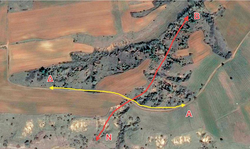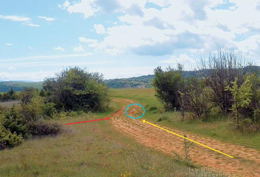 Ενας χωματόδρομος σε μια ράχη με γενική κατεύθυνση Ανατολή – Δύση είναι μόνιμο μονοπάτι διέλευσης όλων των άγριων ζώων της περιοχής. Σε μια στροφή του δρόμου, η διάταξη μιας μεγάλης ρεματιάς στον Βορρά και η εγγύτητα των πρανών της νότιας πλαγιάς στον δρόμο, χωρίς να μεσολαβούν χωράφια, δημιουργεί ιδανικές συνθήκες για ένα μοναδικό πέρασμα στην κατεύθυνση Βορράς – Νότος.