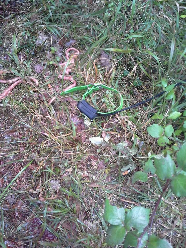 Με το που τέλειωσε το κυνήγι ξεκίνησε να εντοπίσει τον πιστό του σύντροφο,μόνο και μόνο για να αντικρίσει τα παρακάτω ζοφερά υπολείμματα . Ο Γιώργος το πρωί έφυγε από το σπίτι του με ένα υπέροχο ζώο,τον φίλο,σύντροφο και συνάδελφο του και το μεσημέρι γύρισε πίσω μόνο με το λουρί του gps….Οι αρμόδιες υπηρεσίες δεν ενδιαφέρονται,δεν ασχολούνται οπότε ο ματωμένος κατάλογος των κατακρεουργημένων σκύλων μας συνεχίζεται και δυστυχώς δείχνει να μην έχει τέλος ….