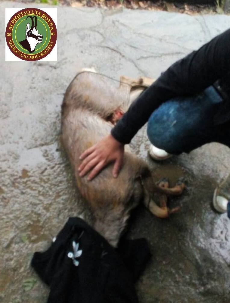 Κατόπιν περιπετειώδους προσπάθειας και υπό συνθήκες καταρρακτώδους βροχής, τα μέλη μας μαζί με τους νεαρούς -αφού ενημερώθηκαν όλες οι αρμόδιες υπηρεσίες- κατάφεραν μόνοι τους να συλλάβουν το τραυματισμένο στα πόδια ζαρκάδι –που παρόλα αυτά εξεδήλωσε εξαιρετικές κολυμβητικές ικανότητες- το οποίο και μετέφεραν σε ασφαλές μέρος κατά τη διάρκεια της νύχτας.
