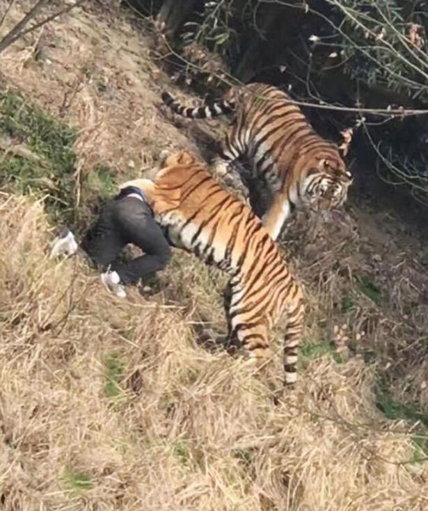 Οι αυτόπτες μάρτυρες δε μπορούσαν να πιστέψουν αυτό που έβλεπαν όταν τρεις τίγρεις επιτέθηκαν σε έναν άνδρα και τον κατασπάραξαν.