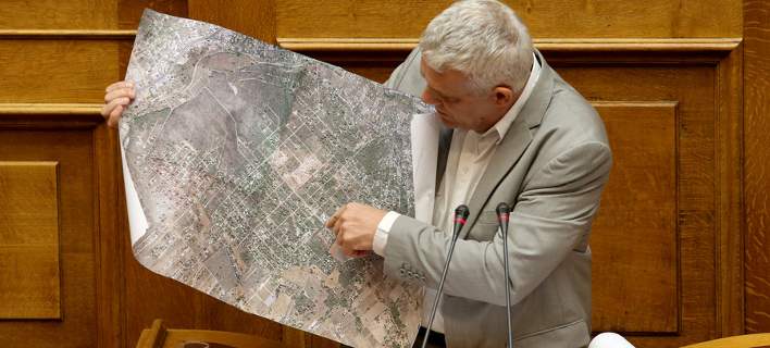 Στα αξιοσημείωτα επίσης στο γεγονός ότι ανέβηκε στο βήμα της Βουλής με έναν δασικό χάρτη, τον οποίο ξεδίπλωσε, εξηγώντας στους βουλευτές τι βλέπουν.