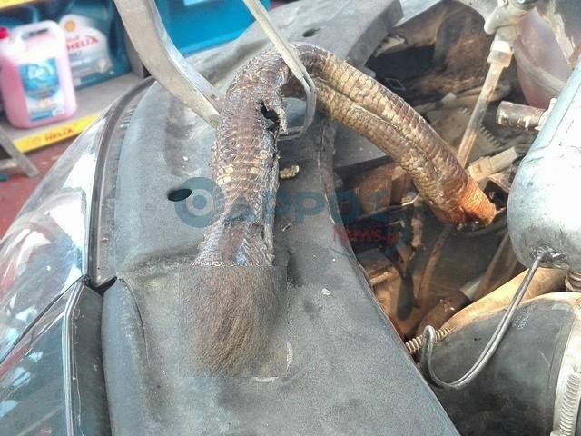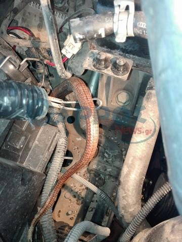 Όπως μπορείτε να δείτε και στις φωτογραφίες το φίδι είχε μπει στο χώρο της μηχανής κάτι που του προκάλεσε και το θάνατο του ερπετού, ωστόσο έκανε και ζημιά στο αυτοκίνητο.