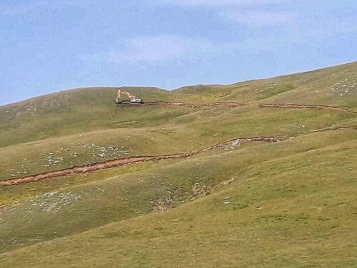 Όπως αναφέρει στο μήνυμά του, βγαίνοντας μια βόλτα στην κορυφογραμμή της Σαράνταινας (Γαρδίκι Άμπλιανη) εντόπισε τα μηχανήματα που έχουν έρθει για να ανοίξουν το δρόμο προκειμένου να εγκατασταθούν οι ανεμογεννήτριες.