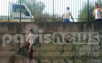 Το άψυχο σώμα του νεκρού σκύλου ήταν δεμένο από τον λαιμό με το σχοινί και ο τοίχος της περίφραξης του σχολείου γεμάτος αίματα, προκαλώντας των αποτροπιασμό των μικρών μαθητών, των καθηγητών και των γονιών τους.