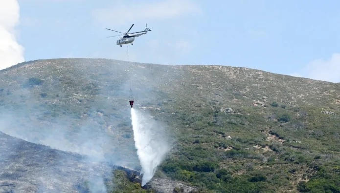 Στην ίδια περιοχή, υπάρχει κι άλλη εστία σε χαράδρα, πάλι από κεραυνό. Καίει κάτω από τον δεύτερο πυλώνα του τελεφερίκ προς το καζίνο.