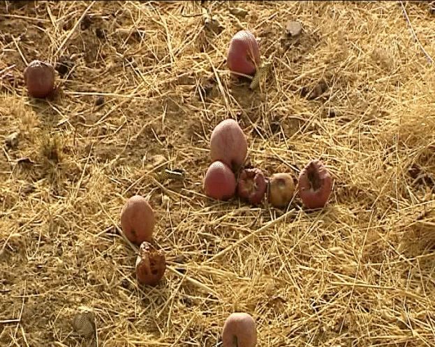 Στρωμένα με σάπια μήλα είναι τα χωράφια στον Ομαλό του Δήμου Πλατανιά Χανίων, καθώς όπως τονίζουν οι καλλιεργητές, οι κίσσες τσιμπούν τον καρπό, με αποτέλεσμα να σαπίζει και να πέφτει από τα δέντρα.
