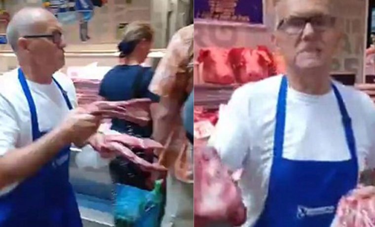 Σύμφωνα με όσα έχουν γίνει γνωστά, το κλιπ τράβηξε ένα μέλος φιλοζωικής οργάνωσης βίγκαν κατά την διάρκεια διαμαρτυρίας στην κρεαταγορά της πόλης, και δείχνει τον εν λόγω κρεοπώλη να προσεγγίζει απειλητικά τους διαδηλωτές κρατώντας και στα δύο του χέρια ωμό κρέας. Στη συνέχεια, φέρνει τις ωμές μπριζόλες μπροστά στο πρόσωπο μερικών εξ αυτών, σε μια προσπάθεια να τους αναγκάσει να φύγουν από την κρεαταγορά.