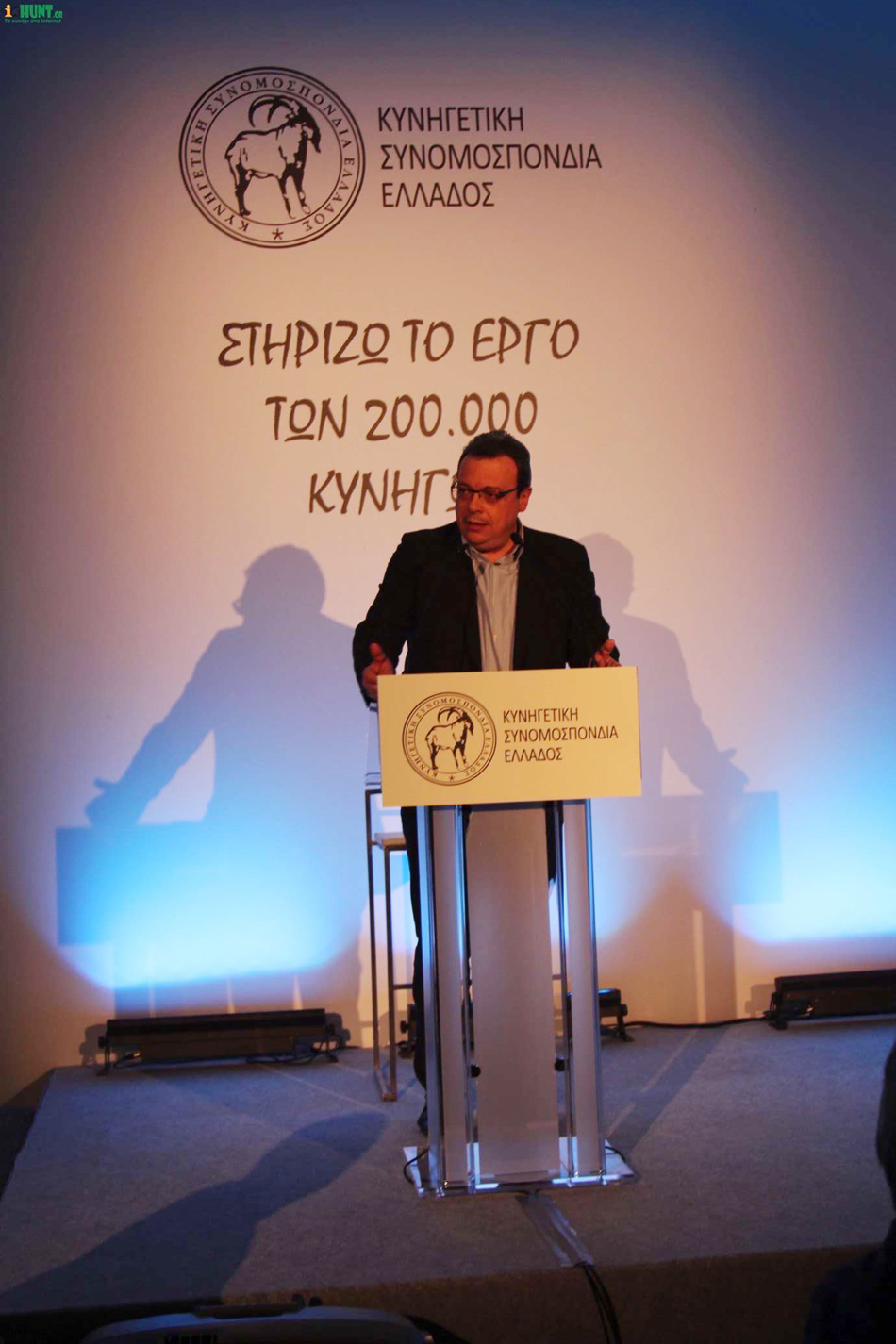 Μέλη της Κυβέρνησης, Βουλευτές, πρώην Υπουργοί, εκπρόσωποι της τοπικής Αυτοδιοίκησης, της Κεντρικής Δασικής Υπηρεσίας και άλλων φορέων, προσήλθαν στην εκδήλωση που έγινε στις 14-3-2017, σε κεντρικό ξενοδοχείο της Αθήνας, τιμώντας το έργο των 200.000 κυνηγών και των Κυνηγετικών Οργανώσεων.