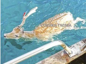 Ο κ.Κώστας που ψάρευε μαζί με φίλο του στη θαλάσσια περιοχή του Μπουρνώντα Δροσιάς.,αντί να δει ψάρια στα δίχτυα του ,είδε να κολυμπά πλάι τους ένα πανέμορφο ελάφι!