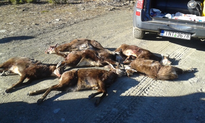 Ακολούθησε επισταμένη έρευνα και αυτοψία στην περιοχή, που ήταν καλυμμένη με χιόνι και λίγο μετά εντοπίστηκαν κάτω από σωρούς κλαδιών, σκεπασμένα επιμελώς, τα έξι νεκρά αγριόγιδα.