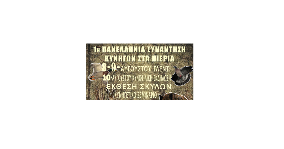 Στην καρδιά των καταπράσινων Πιερίων, σε υψόμετρο 1100 μ. στο Πάρκο των Μουσών πάνω απ το Ελατοχώρι, το τριήμερο 8, 9 και 10 Αυγούστου 2014, οργανώνεταιη 1η Πανελλήνια Συνάντηση Κυνηγών και φίλων στα Πιέρια. Είναι μια πρωτοβουλία της A Hellas Sound & Records με την υποστήριξη του Κυνηγετικού Συλλόγου Κατερίνης που σκοπό έχει να συγκεντρώσει το ενδιαφέρον των κυνηγών απ όλη τη Ελλάδα με πολύμορφες εκδηλώσεις, κυνηγετικής ενημέρωσης, κυνοφιλίας, προβολής δράσεων, ψυχαγωγίας, προσφορές δώρων και με παραδοσιακό γλέντι. Η είσοδος είναι δωρεάν