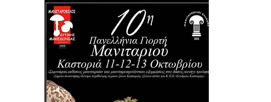 Διοργανώνεται στις 11,12 και 13 Οκτωβρίου 2013 στην Καστοριά η 10η γιορτή μανιταριού. Το πρόγραμμα των εκδηλώσεων έχει ως εξής :