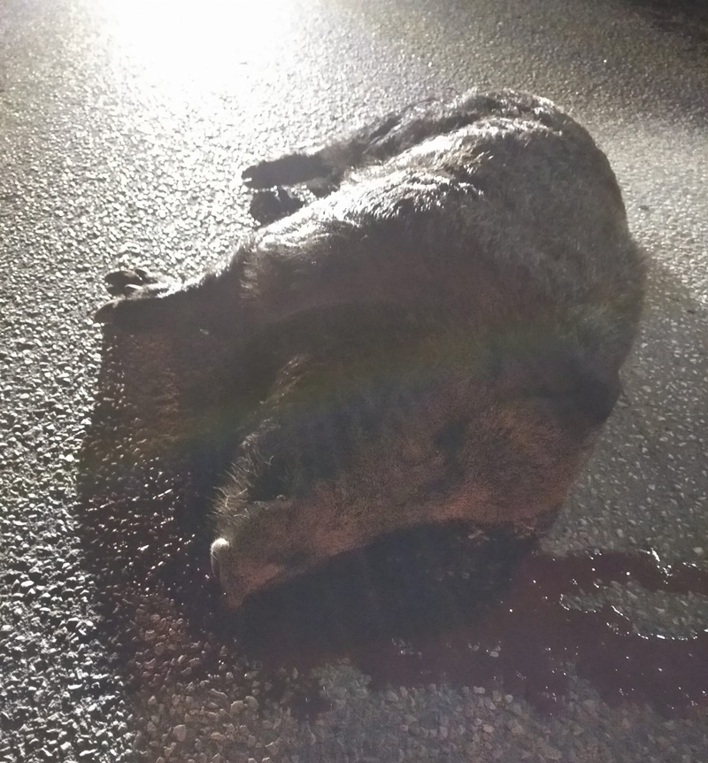 Ο αγριόχοιρος συγκρούστηκε με μεγάλη δύναμη με διερχόμενο όχημα προκαλώντας ευτυχώς μόνο υλικές ζημιές στο όχημα.