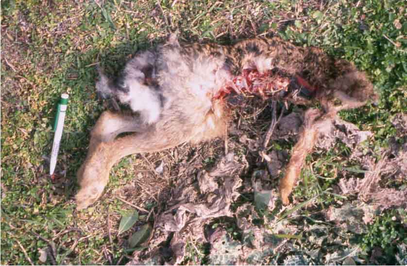 Νεαρός λαγός σε πεδινή έκταση με σιτηρά στην περιοχή της Θεσσαλονίκης που έχει θηρευτεί από αρπακτικό πτηνό.