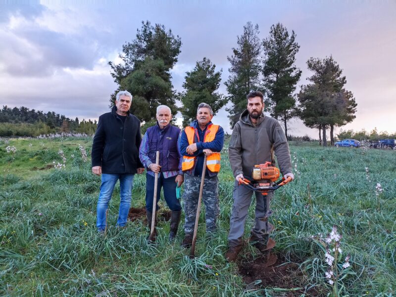 Χωρίστηκαν σε ομάδες και σε μόλις τριάντα λεπτά της ώρας είχαν μεταφυτεύσει 150 δενδράκια πεύκων, κυπαρισσιών και κουτσουπιών σε λάκκους φύτευσης που είχαν προετοιμάσει τα μέλη του Κυνηγετικού Συλλόγου τις προηγούμενες μέρες.