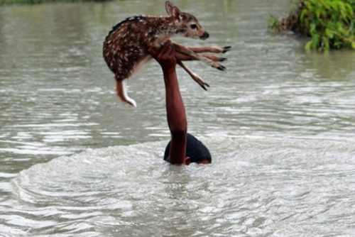 Το γύρο του κόσμου κάνουν οι φωτογραφίες με τη μάχη που έδωσε με τα ορμητικά νερά ο 15χρονος Μπελάλ από το Μπαγκλαντές στην προσπάθεια του να σώσει από βέβαιο πνιγμό ένα μικρό ελαφάκι.Ο νεαρός είχε πάει εκδρομή με τους γονείς στις όχθες του ποταμού Νοακχάλί καιπρόσεξε το ελαφάκι το οποίο είχε πέσει μέσα στο νερό και πάσχιζε να σωθεί από τα ορμητικά νερά.