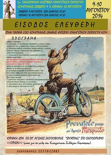Προσκαλούνται τα μέλη του Κυνηγετικού Συλλόγου Κομοτηνής και οι φίλοι τους στο 2ο Πανελλήνιο Φεστιβάλ Κυνηγετικού Συλλόγου Κομοτηνής που θα γίνει το Σάββατο και την Κυριακή 9-10 Αυγούστου .