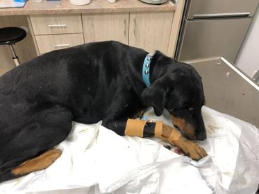 Ο συνάδελφος κυνηγός είχε μαζί του τα κατάλληλα φάρμακα και το σκυλί ξεπέρασε τον κίνδυνο.