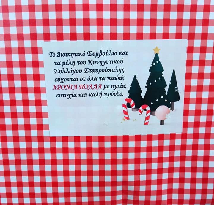 Μέρες γιορτινές, χαρούμενες, για τους μικρούς μας μαθητές. Ο Κυνηγετικός Σύλλογος Σταυρούπολης σήμερα Τετάρτη 22 Δεκεμβρίου 2021 βρέθηκε στα σχολικά συγκροτήματα Δημοτικού και Νηπιαγωγείου της Δ.Ε Σταυρούπολης και μοίρασε δωράκια σε όλα τα παιδιά στέλνοντας τα ΧΡΟΝΙΑ ΠΟΛΛΑ με υγεία προσωπική, οικογενειακή και καλή πρόοδο.