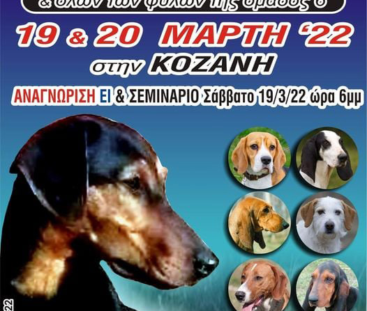 Στις 19 & 20 Μαρτίου 2022 θα διεξαχθεί Αγώνας Κυνηγετικών Ικανοτήτων (ΑΚΙ) ιχνηλατών και ταυτόχρονα θα διεξαχθεί εκδήλωση αναγνώρισης και ταυτοποίησης Ελληνικών Ιχνηλατών. Θα ακολουθήσει παρουσίαση του Ελληνικού Ιχνηλάτη, της μοναδικής διεθνώς αναγνωρισμένης ελληνικής φυλής που διασώθηκε χάρη στις προσπάθειες και την αγάπη του κυνηγετικού κόσμου.