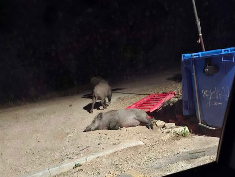 Στην πρώτη φωτογραφία φαίνεται ένα από τα αγριογούρουνα να κοιμάται μακαρίως στο Δαφνί, δίπλα στον κάδο, κάτω από τη λάμπα του δημοτικού φωτισμού. Μας την έστειλε η κ. Μαρία Μαθιούδη.