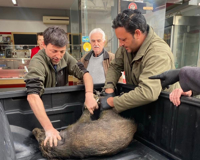Σύμφωνα με όσα αναφέρει ο Κυνηγετικός Σύλλογος Καλαμάτας, όταν 2 μέλη του εντόπισαν το ζώο να κινείται στον αστικό ιστό της πόλης, άμεσα το ακινητοποίησαν προκειμένου να αποφευχθεί οποιοδήποτε πιθανό τροχαίο.