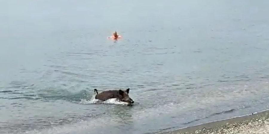 Αυτή είναι η σουρεαλιστική στιγμή που ένα αγριογούρουνο βγαίνει από τη θάλασσα της Μεσογείου και τρέχει σε μια παραλία της Κόστα μπροστά στους έκπληκτους τουρίστες.
