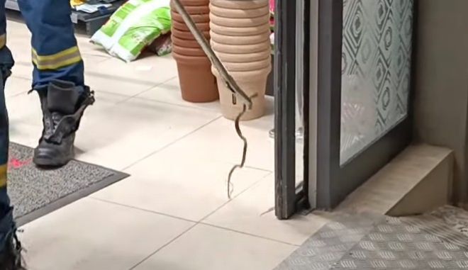 Σύμφωνα με το almyrospress, το περιστατικό σημειώθηκε το βράδυ της Δευτέρας, λίγο μετά το κλείσιμο του καταστήματος, όταν οι υπάλληλοι διαπίστωσαν ότι το φίδι βρισκόταν μέσα στο κατάστημα.