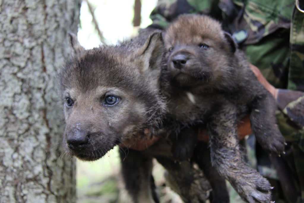 Λυκόπουλα από δύο διαφορετικές γέννες, τα οποία βρίσκονταν σε απόσταση αρκετών εκατοντάδων μέτρων. Και οι δύο γέννες τη στιγμή που τις ανακαλύψαμε αποτελούνταν από μεγαλύτερα και μικρότερα κουτάβια, 5 και 2 εβδομάδων, επειδή οι μητέρες έπαιρναν κουτάβια η μία από την άλλη.