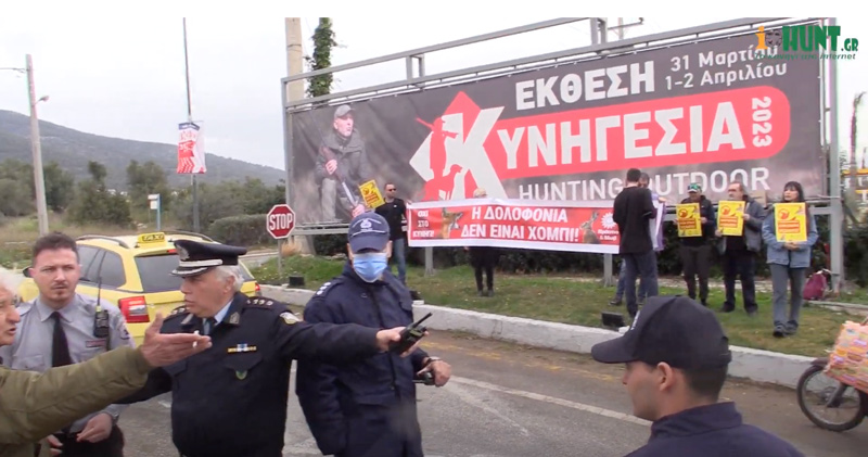 Συνεπείς ήταν στο ραντεβού τους οι αντικυνηγοί «αναρχικοί» έξω από την έκθεση ΚΥΝΗΓΕΣΙΑ 2023 με την συμπαράσταση 4-5 ατόμων από το Κόμμα των Ζώων.
