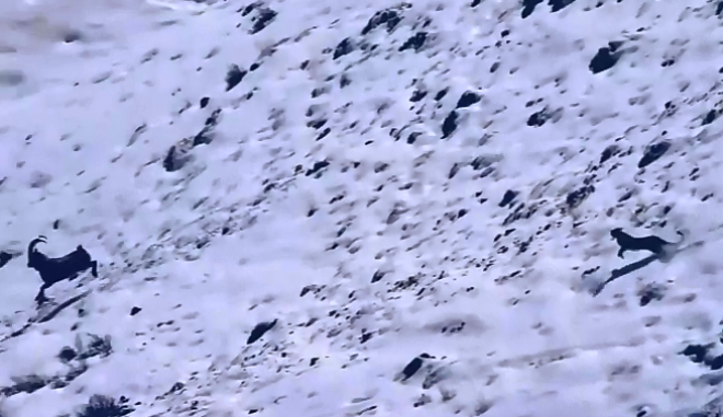 Μετά από μία ανελέητη καταδίωξη στις χιονισμένες πλαγιές, τα δύο ζώα πέφτουν από γκρεμό 120 μέτρων με αποτέλεσμα τον θάνατο του μπάραλ.