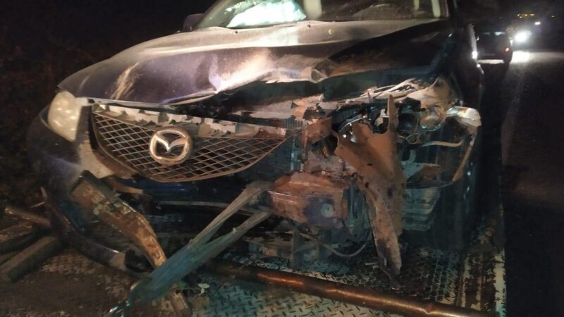 Ο αγριόχοιρος συγκρούστηκε με μεγάλη δύναμη με διερχόμενο όχημα προκαλώντας μεγάλες υλικές ζημιές στο όχημα.