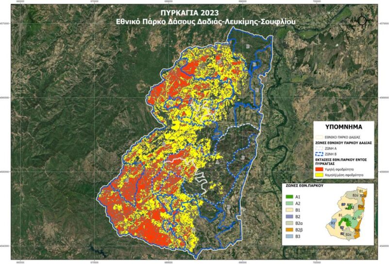 Ξεκίνησε η αποτίμηση των περιβαλλοντικών επιπτώσεων από την πυρκαγιά που εκδηλώθηκε στο Εθνικό Πάρκο Δάσους Δαδιάς – Λευκίμης Σουφλίου.