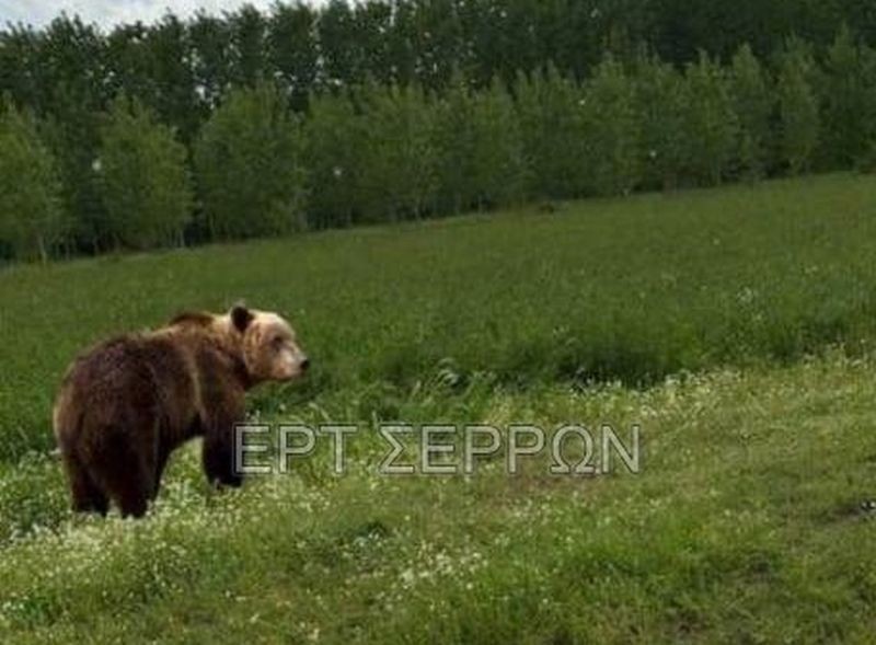 Μια αρκούδα εντοπίστηκε το μεσημέρι έξω από τα Χρυσοχώραφα Σερρών, λίγα μέτρα από τα πρώτα σπίτια του χωριού.