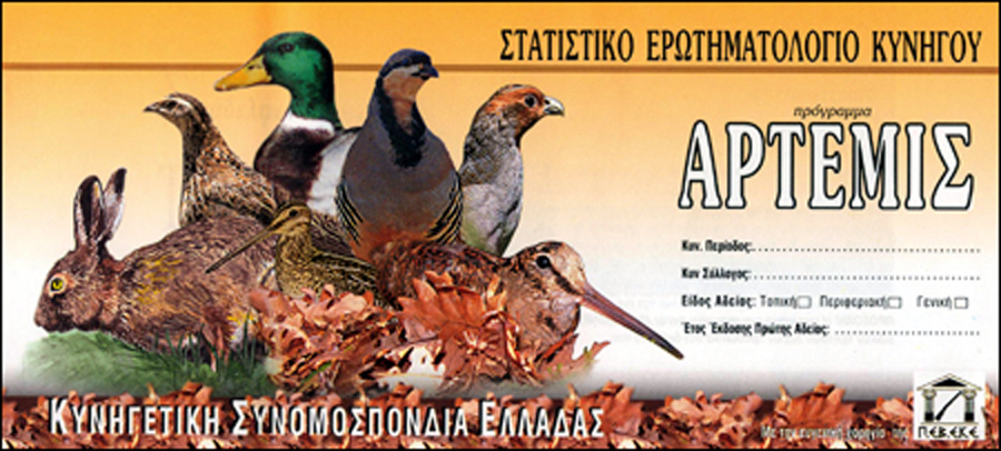 Το πρόγραμμα «’Aρτεμις» είναι μια διαρκής μελέτη καταγραφής της κυνηγετικής κάρπωσης και παρακολούθησης των θηραματικών πληθυσμών. Διανύει τον δέκατο χρόνο της ζωής του, είναι έργο της Κυνηγετικής Συνομοσπονδίας Ελλάδος και εκπονείται από τετραμελή ομάδα επιστημονικών συνεργατών της.