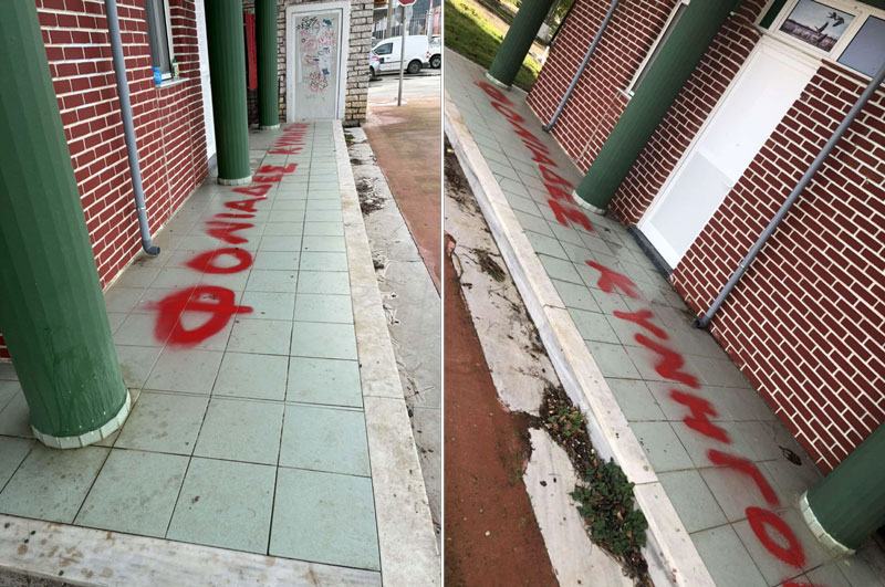 Σύμφωνα με τις εικόνες, το μήνυμα αποτυπώθηκε στο δάπεδο του διαδρόμου μπροστά από τα γραφεία, ενώ στον ίδιο χώρο υπάρχουν και επιπλέον σημάδια μπογιάς. Πρόκειται για μια καθαρά θρασύδειλη ενέργεια, που δεν στοχεύει στην έκφραση άποψης, αλλά στη φθορά ξένης περιουσίας, στον εκφοβισμό και στη δημιουργία έντασης.