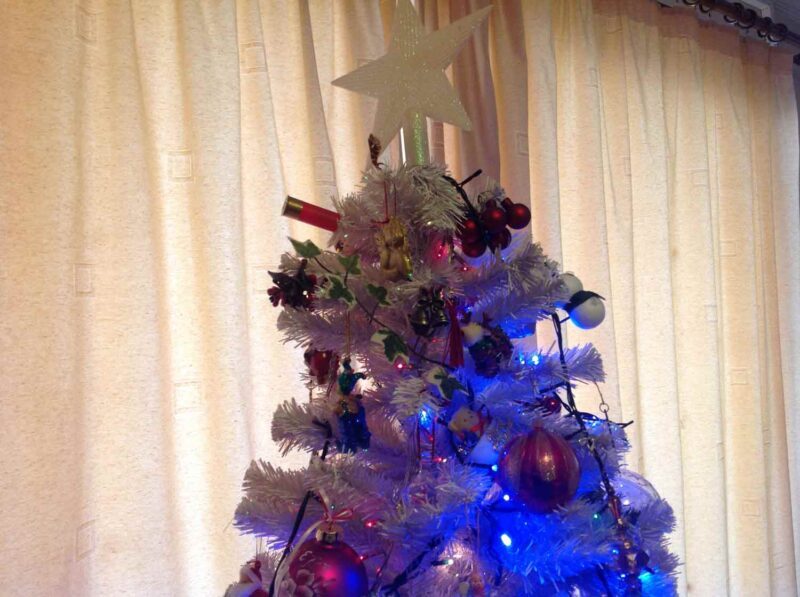 Κάθε οικογένεια έχει τις ιδιαίτερες συνήθειες και παραδόσεις της. Στη δική μας προετοιμαζόμαστε για τις άγιες μέρες από νωρίς. Στολίζουμε το δέντρο μας – λευκό για να θυμίζει τα χιονισμένα έλατα των βουνών, όπου φωλιάζουν τα άγρια θηράματα- με φωτάκια, πολύχρωμες μπάλες, καμπανούλες, αγιοβασίληδες και στην κορυφή το αστέρι και φτερά μπεκάτσας και ένα άδειο φυσίγγι για γούρι να πάει καλά κυνηγετικά η χρονιά που έρχεται.