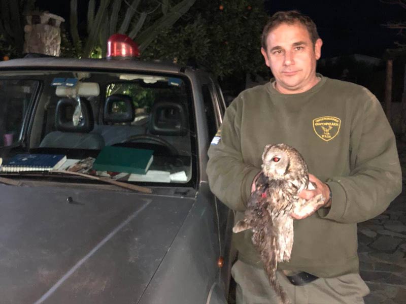Εχθές (20/01/2023) και ώρα 17:15 ο Ομοσπονδιακός θηροφύλακας Ηλίας Τσακουμάκης κινούμενος κατά την υπηρεσία του στην περιοχή Ηραίον Σάμου εντόπισε έναν χουχουριστή (Strix aluco) παγιδευμένο σε συρματόπλεγμα.