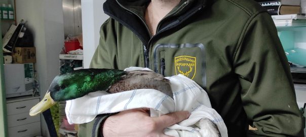 Έπειτα από τηλεφωνική επικοινωνία από κατοίκους της περιοχής ενημερωθήκαμε ότι υπάρχει ένα μικρό κοπάδι πρασινοκέφαλων σε ένα λιμανάκι έξω από την πόλη της Μυτιλήνης και ο αρσενικός φαίνεται τραυματισμένος στο πόδι. Οι Ομοσπονδιακοί θηροφύλακες το εντόπισαν και με το επιστημονικό προσωπικό της Ομοσπονδίας μας σε συνεργασία με την Δασική Υπηρεσία το πουλί πιάστηκε και εξετάστηκε από την κτηνίατρο Μυρσίνη Τουρβαλή.