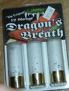 Tα Dragons Breath είναι πολύ «επικίνδυνα» φυσίγγια διαμετρήματος 12 gauge που βασίζονται σε μια πρόσμιξη ζιρκονίου, τα οποία όταν πυροδοτούνται από ένα λειόκαννο προκαλούν κάτι…σαν πυροτέχνημα σε μια απόσταση περίπου 5 μέτρων (20 πόδια) και είναι πολύ επικίνδυνα γιατί μπορεί να προκαλέσουν πολύ εύκολα εμπρησμό σε διάφορα φυσικά περιβάλλοντα.