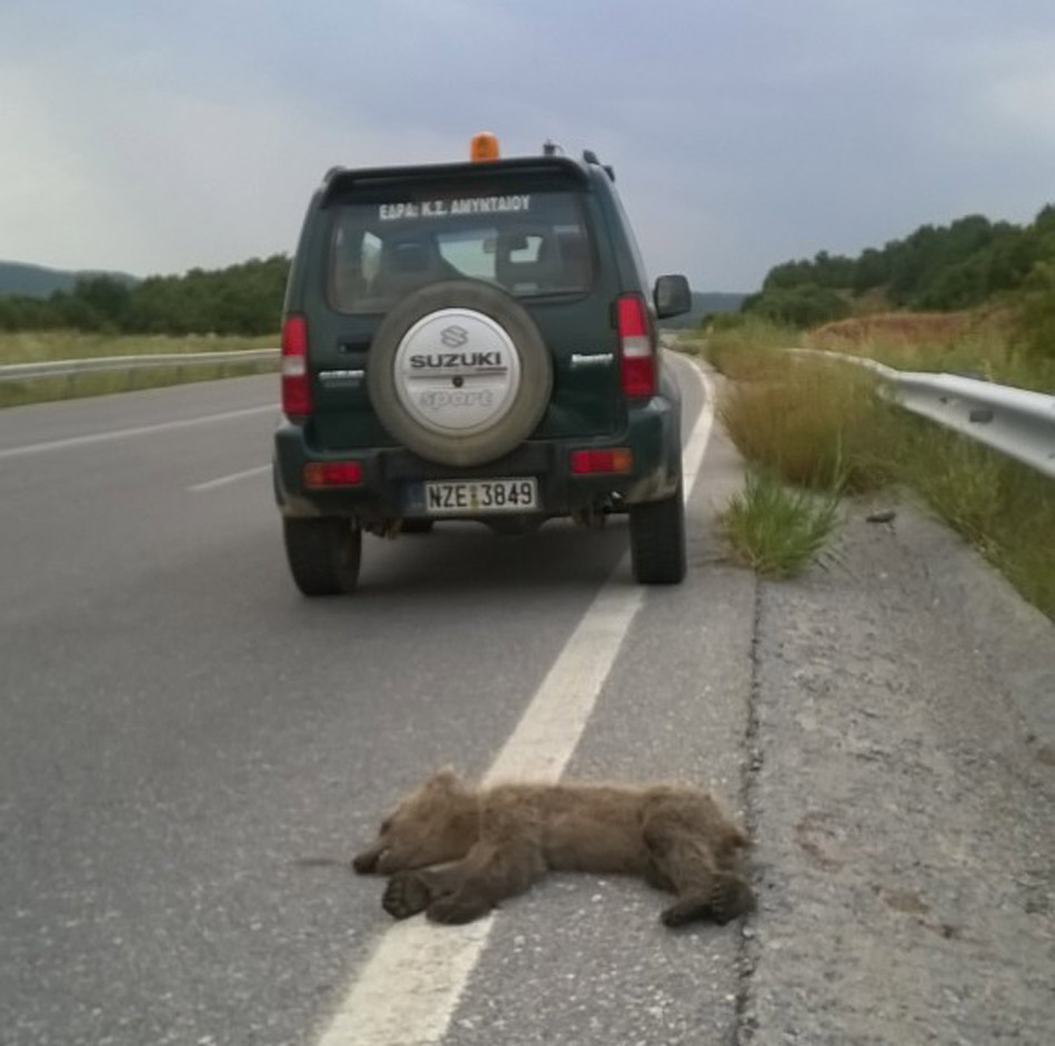 Το ανωτέρω άτυχο ζώο τραυματίστηκε θανάσιμα στο κεφάλι, από διερχόμενο όχημα, στην προσπάθειά του να διασχίσει κάθετα το δρόμο. Στο σημείο βρέθηκε ο Ομοσπονδιακός θηροφύλακας της ΣΤ΄ΚΟΜΑΘ για το Αμύνταιο και κλιμάκιο του «Αρκτούρου». Αφού ειδοποιήθηκαν οι αρμόδιοι φορείς το αρκουδάκι παρέλαβε ο Αρκτούρος. Επισημαίνεται το γεγονός της θανάτωσης πολλών αγρίων ζώων της πανίδας στο συγκεκριμένο σημείο. Κρίνεται επιτακτική πλέον η ανάγκη της τοποθέτησης ικανών συρμάτινων φραχτών κατά μήκος και των δύο πλευρών της εθνικής οδού για αποφυγή στο μέλλον τυχόν παρόμοιων περιστατικών.