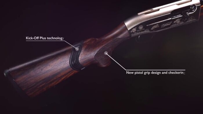 H A400 Upland είναι η πρώτη Beretta που έχει ένα πρωτοποριακό κοντάκι που ενσωματώνει την τεχνολογίαKick-Off Plus και που μειώνει την ανάκρουση κατά 50% ! Η βάση του όπλου από νικέλιο είναι χαραγμένη με κυνηγετικές παραστάσεις.