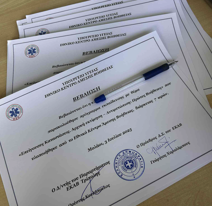 Η γνώση Πρώτων Βοηθειών και ΚΑΡΠΑ μπορεί να αποδειχθεί καθοριστική σε κρίσιμες στιγμές. Για τον λόγο αυτό, ο Σύλλογος συνεχίζει να επενδύει σε πρωτοβουλίες που καλλιεργούν την πρόληψη, την ψυχραιμία και την ορθή αντίδραση σε επείγοντα περιστατικά.